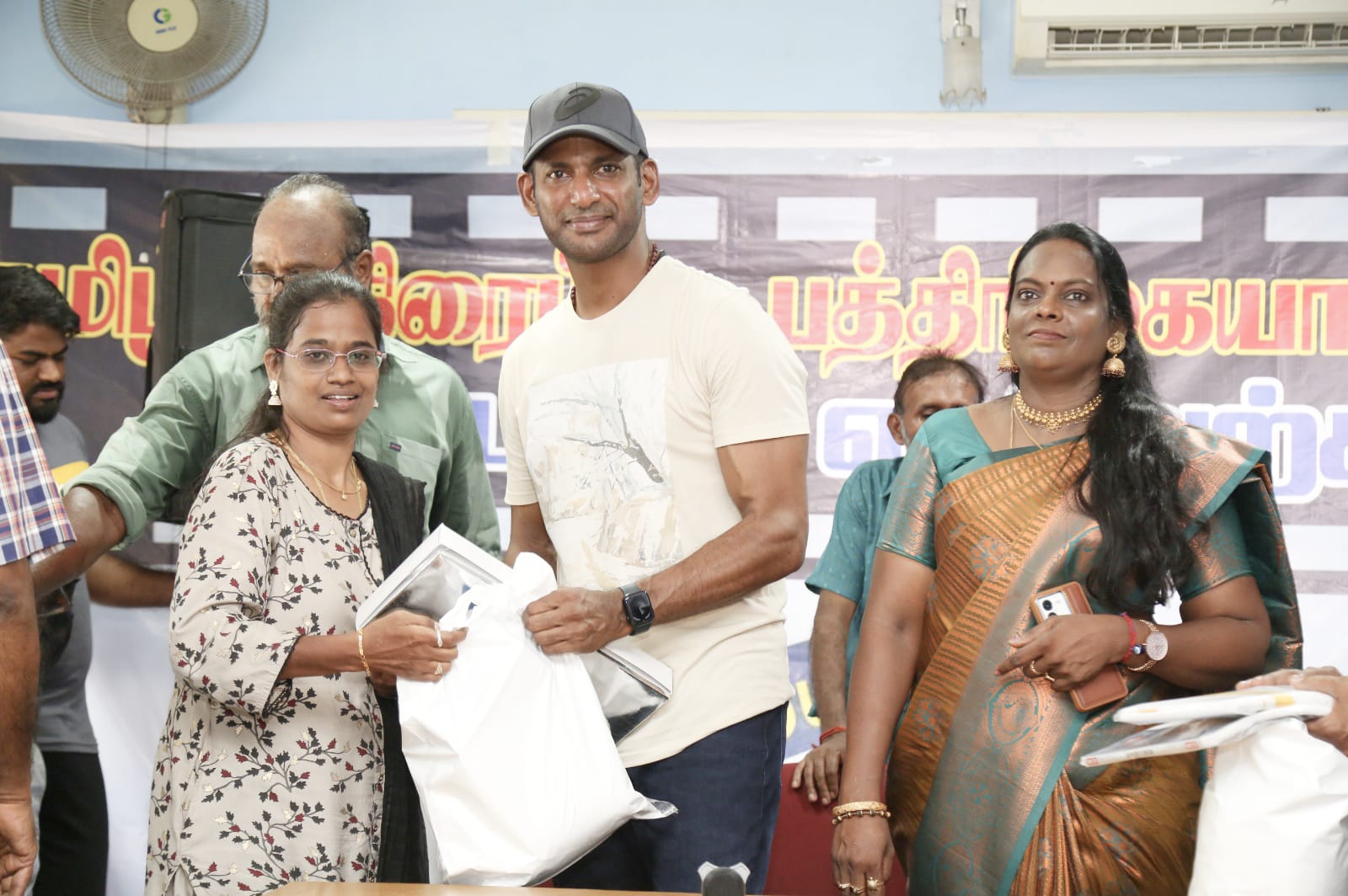விழாவில் சிறப்பு விருந்தினராக நடிகர் விஷால் கலந்து கொண்டு உறுப்பினர்களுக்கு பரிப் பொருட்களை வழங்கி செய்தியாளர்களுடன் கலந்துரையாடினார்.