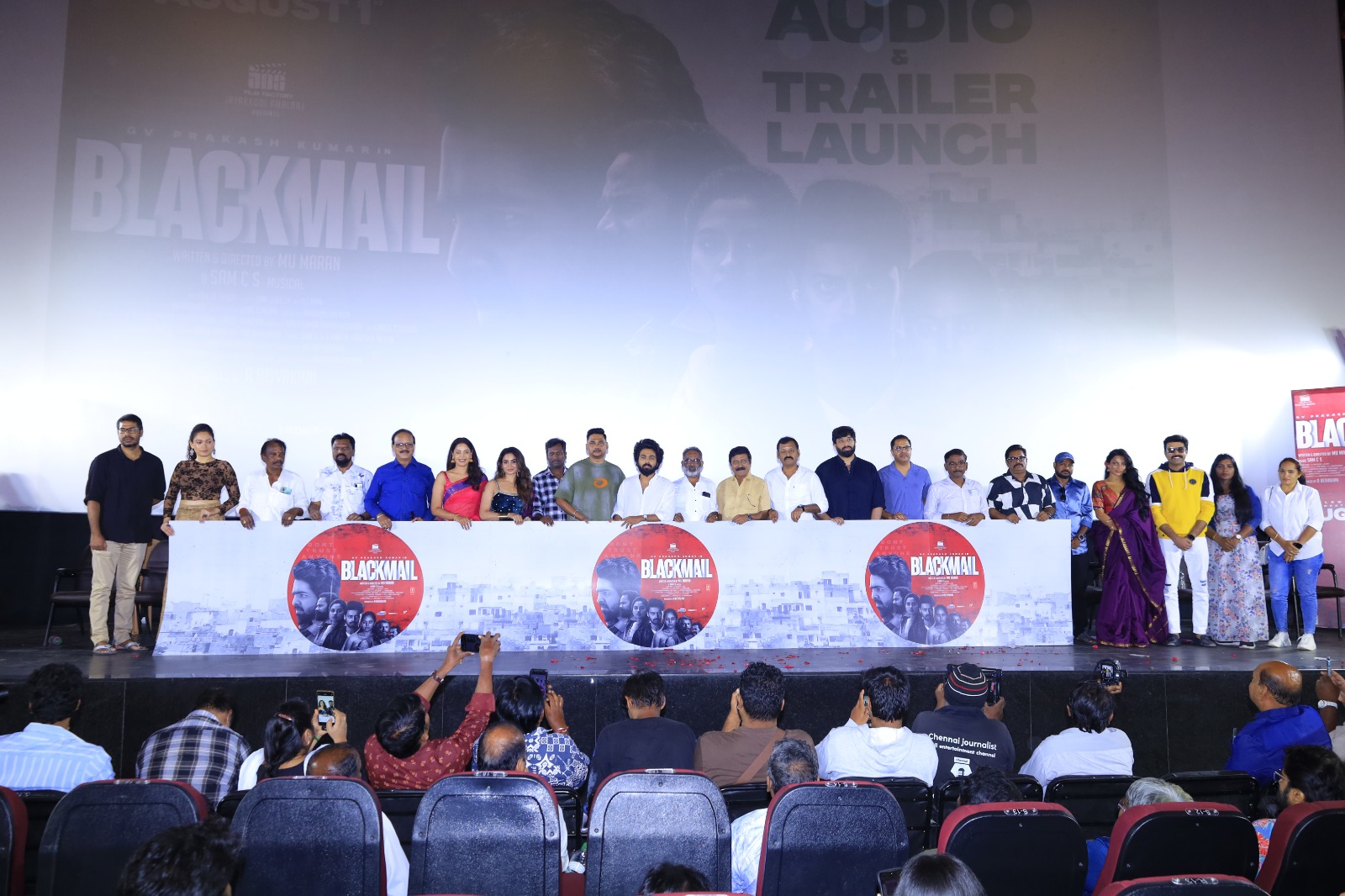 M/s. JDS ஃபிலிம் ஃபேக்டரி தயாரிப்பில் மு. மாறன் இயக்கத்தில் நடிகர்கள் ஜி.வி. பிரகாஷ், தேஜூ அஸ்வினி மற்றும் பிந்து மாதவி நடிப்பில் உருவாகி இருக்கும் திரைப்படம் ’பிளாக்மெயில்’. ஆகஸ்ட் 1 அன்று வெளியாக இருக்கும் இந்தப் படத்தின் இசை வெளியீட்டு விழா சென்னையில் நடைபெற்றது.